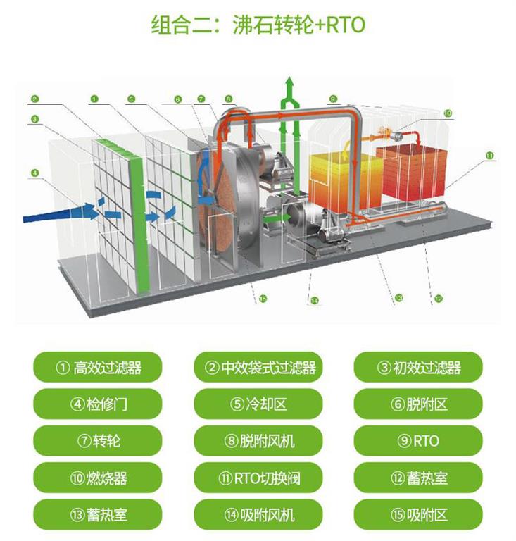 沸石轉(zhuǎn)輪濃縮裝置一體機(jī)+rto催化燃燒: