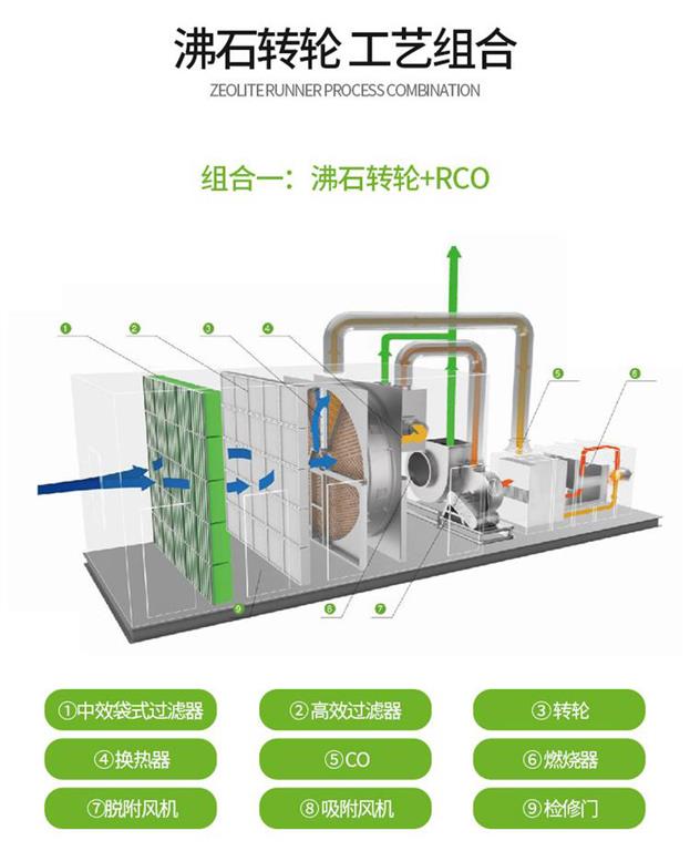 沸石轉(zhuǎn)輪濃縮裝置一體機(jī)+rco催化燃燒